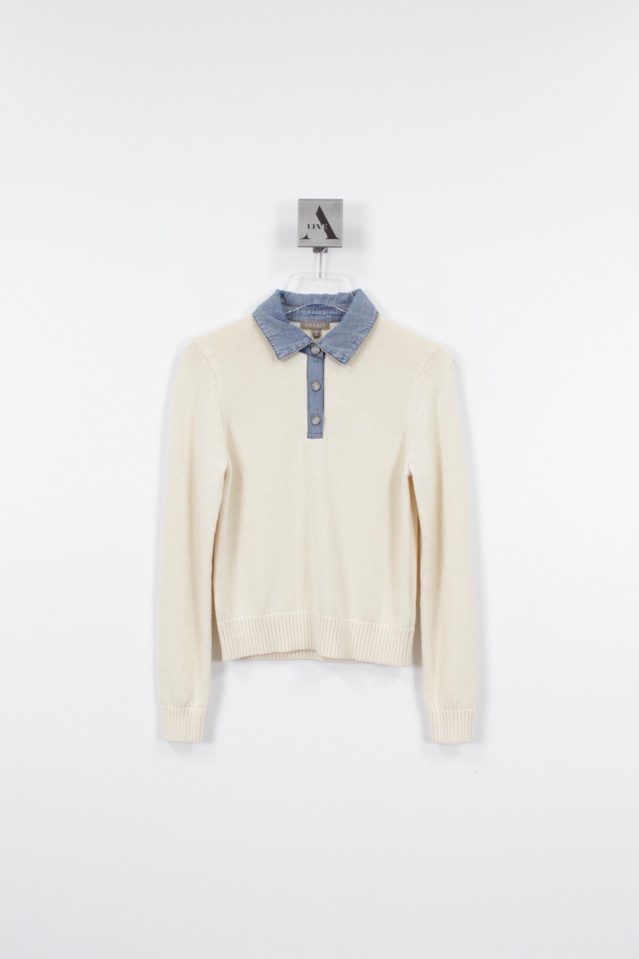 Denim Collar Polo Sweater