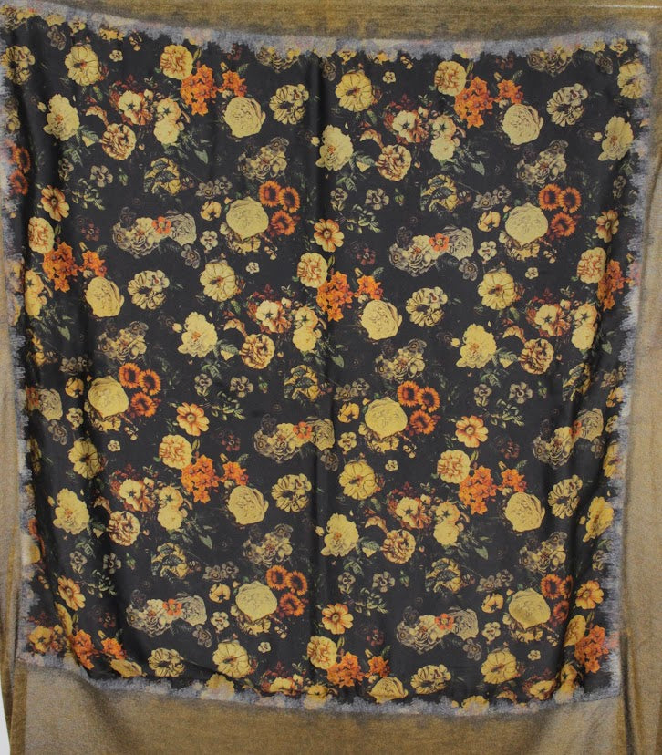 ROMANTIC FLOWERS PRINT FOULARD SCARF 130x120